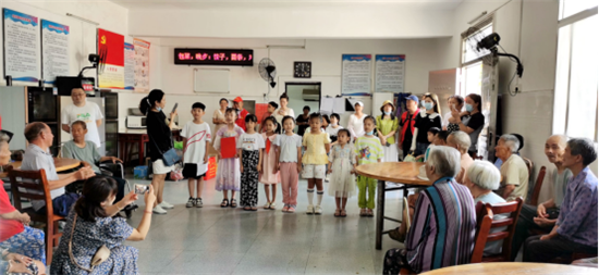 2022年7月9号上午, 公益在线湖北站携手武汉市江岸区亿嘉亲社工服务中心与中越控股集团等开展“爱老敬老,学习模范”主题公益活动,一行52人来到英山县孔家坊乡农村福利院进行慰问。