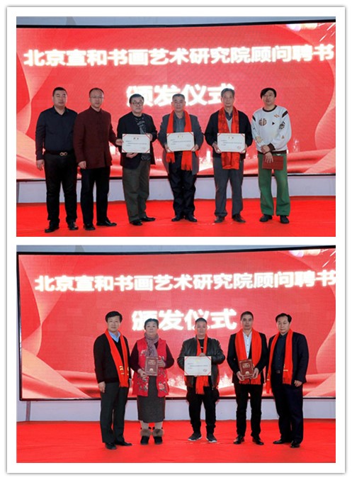 张成发、张子嘉、王大川、陈业庭、姚定平、雍刚、王文德、王化宝、苑建国被北京宣和书画艺术研究院聘为艺术顾问,并有顾问韩忠贵、执行院长单玉志、常务副院长许顺喜、副院长张文怀、副院长张业军、副院长高源、副院长刘俊、副院长周曦、秘书长杨东亮、院委会主任葛棣、副秘书长冯永军、王健为以上嘉宾颁发宣和艺术院顾问聘书。
