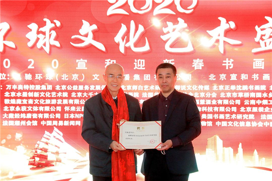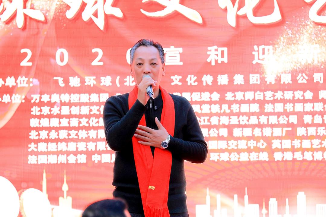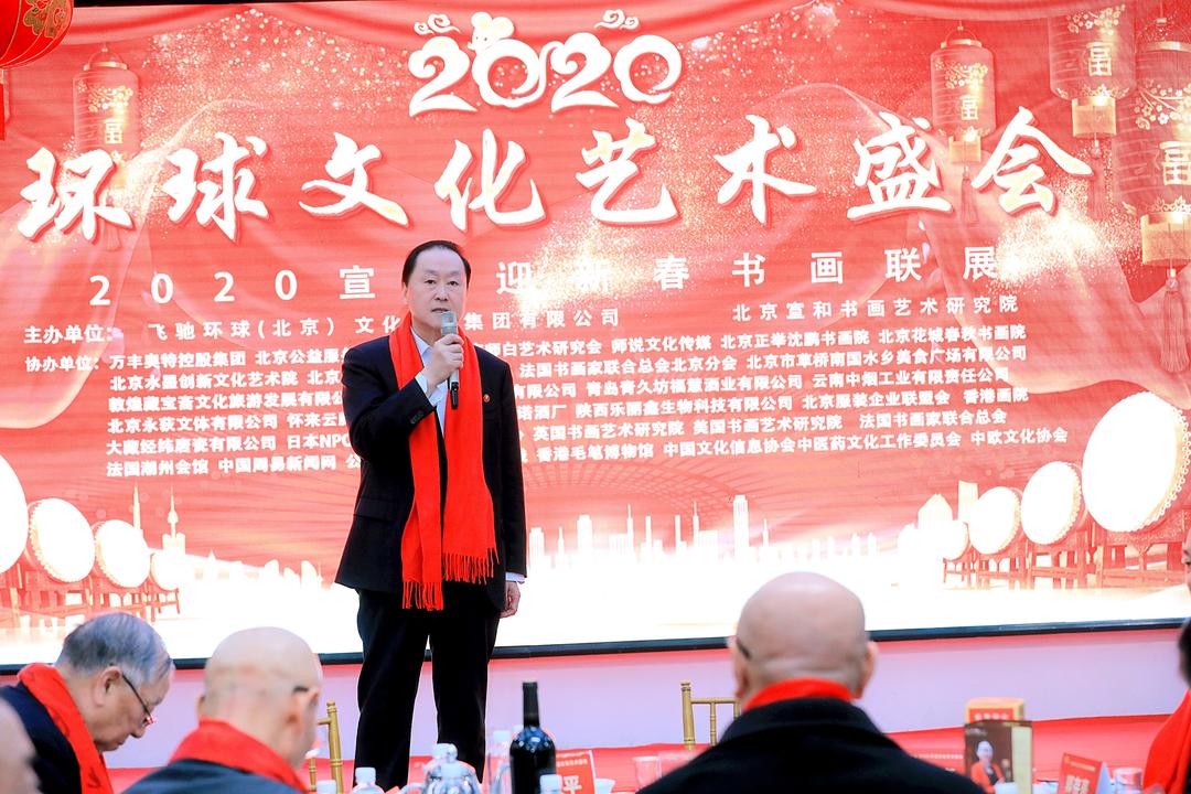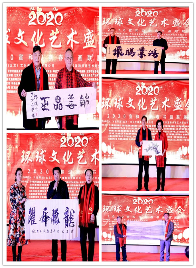 本网讯(记者 冯永军 报道):2020年1月9日下午,由飞驰环球(北京)文化传播集团有限公司、北京宣和书画艺术研究院主办;万丰奥特控股集团、北京公益服务发展促进会、师说文化传媒、北京正举沈鹏书画院、北京花城春秋书画院、北京师白艺术研究会、北京水墨创新文化艺术院、北京大千大风堂轶凡书画院、法国书画家联合总会北京分会、北京市草桥南国水乡美食广场有限公司、荣成泰祥食品股份有限公司、鲅鱼水饺,敦煌藏宝斋文化旅游发展有限公司、黑龙江省海圣饮品有限公司、青岛青久坊福慧酒业有限公司、云南中烟工业有限责任公司、北京永荻文体有限公司、怀来云腾商贸有限公司、新疆名诺酒厂、陕西乐丽鑫生物科技有限公司、北京服装企业联盟会、大藏经纬唐瓷有限公司、日本NPO法人日中国际交流中心、英国书画艺术研究院、美国书画艺术研究院、法国书画家联合总会、法国潮州会馆、香港画院、香港毛笔博物馆、中国周易新闻网、公益在线、环球公益在线协办支持的飞驰环球2020环球文化艺术盛会暨宣和迎新春书画联展活动在北京市丰台区世界花卉大观园隆重举行。