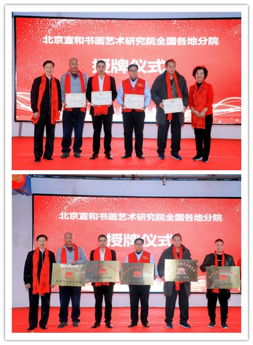 为了响应国家号召,积极开展文化建设活动,进一步坚定文化自信、文化自觉,牢记使命担当,继承创新发展,建设全国一流画院,宣和艺术院以最好的品牌资源、媒体资源和人脉资源等八大优势对接市场,与众多合作伙伴共抓机遇,分享价值,实现战略共赢。活动现场,林继福、刘大刚、张文怀、白雁等领导分别为北京宣和书画艺术研究院 台州分院院长金东福、敦煌写生创作基地主任王爱新、江苏昆山分院院长周曦、天津二分院院长张凤奎、唐山一分院院长陈志刚进行颁发聘书及授牌。同时,中国驻卢森堡大使、北京宣和书画艺术研究院顾问马志学为宣和艺术院日本分院授牌。